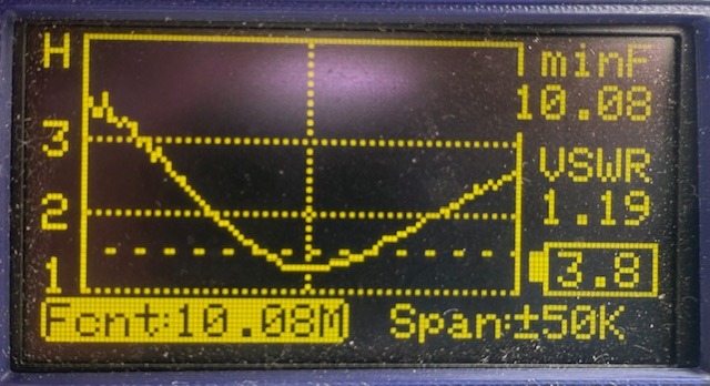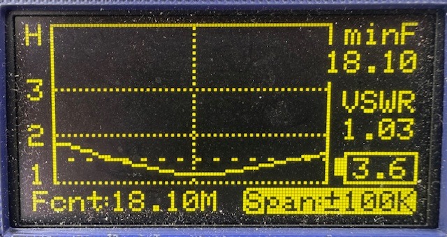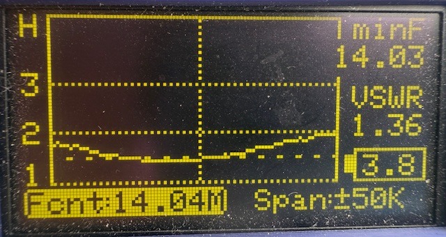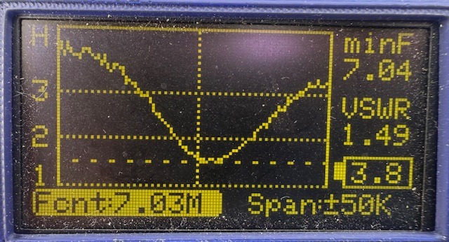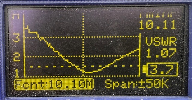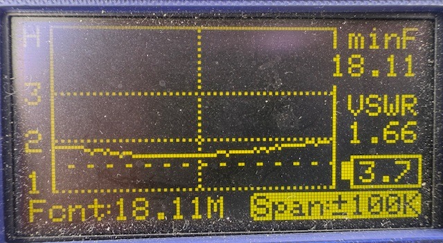 今回の目的はPOTAもあったのですが、運用環境が違っていてアンテナの調整長さにどのくらい影響があるのか、マッチングユニットの値が現状値で大丈夫かの確認があり、それらも大きな影響が無く、数mmの範囲で共振点が調整できるとわかりました。