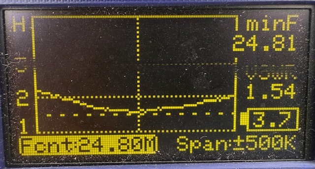ここでも前日と同じミスをして左右の長さが違ってて共振点がなく焦りましたが、前日より5mmほど短い長さで同様の結果が得られました。