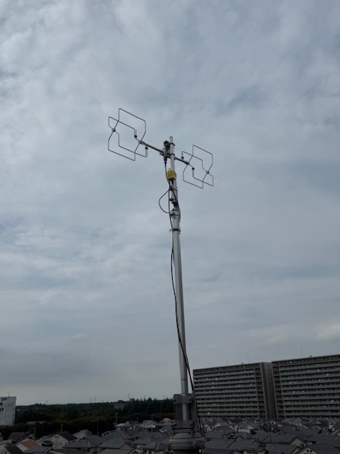 余談ですが、設置されていたアンテナは片側20cmほどのパイプに入れたようなダイポールが縦横2本ずつ4画に配置されたものでした。