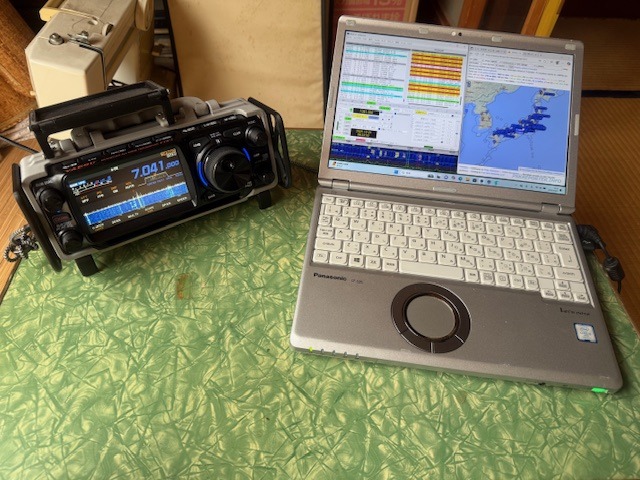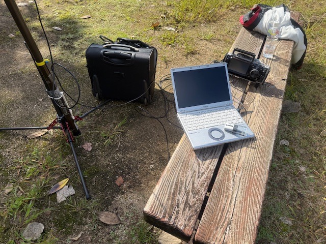 リグ側の写真が取れてないのですが、日差しでPCの画面が全く見えずたまたま持ってきたダンボールでPCを上にかぶせて運用しました。